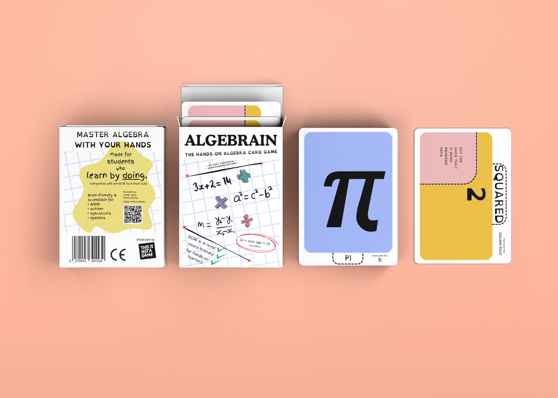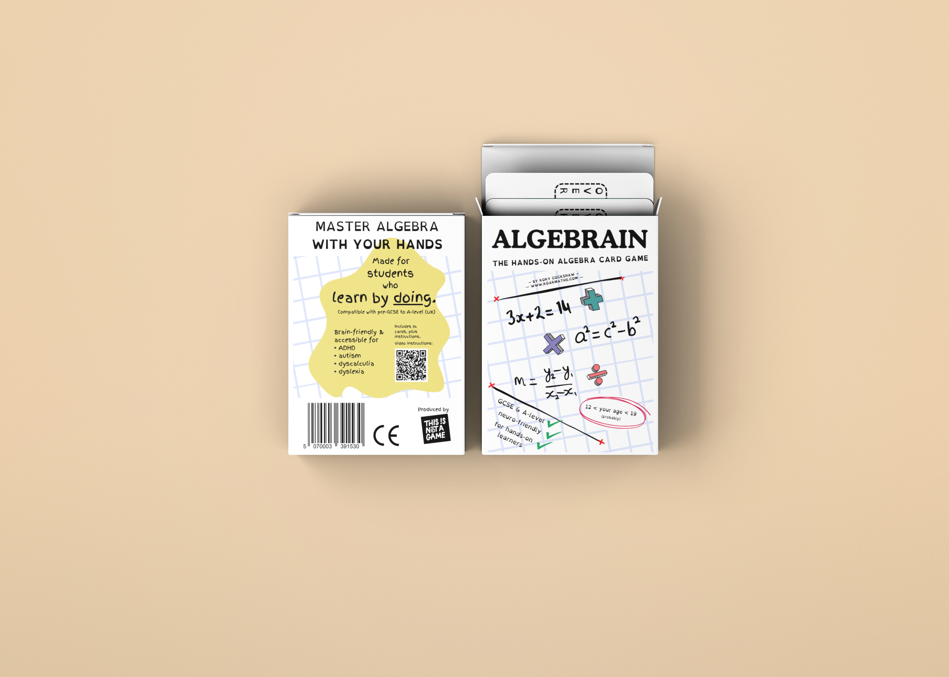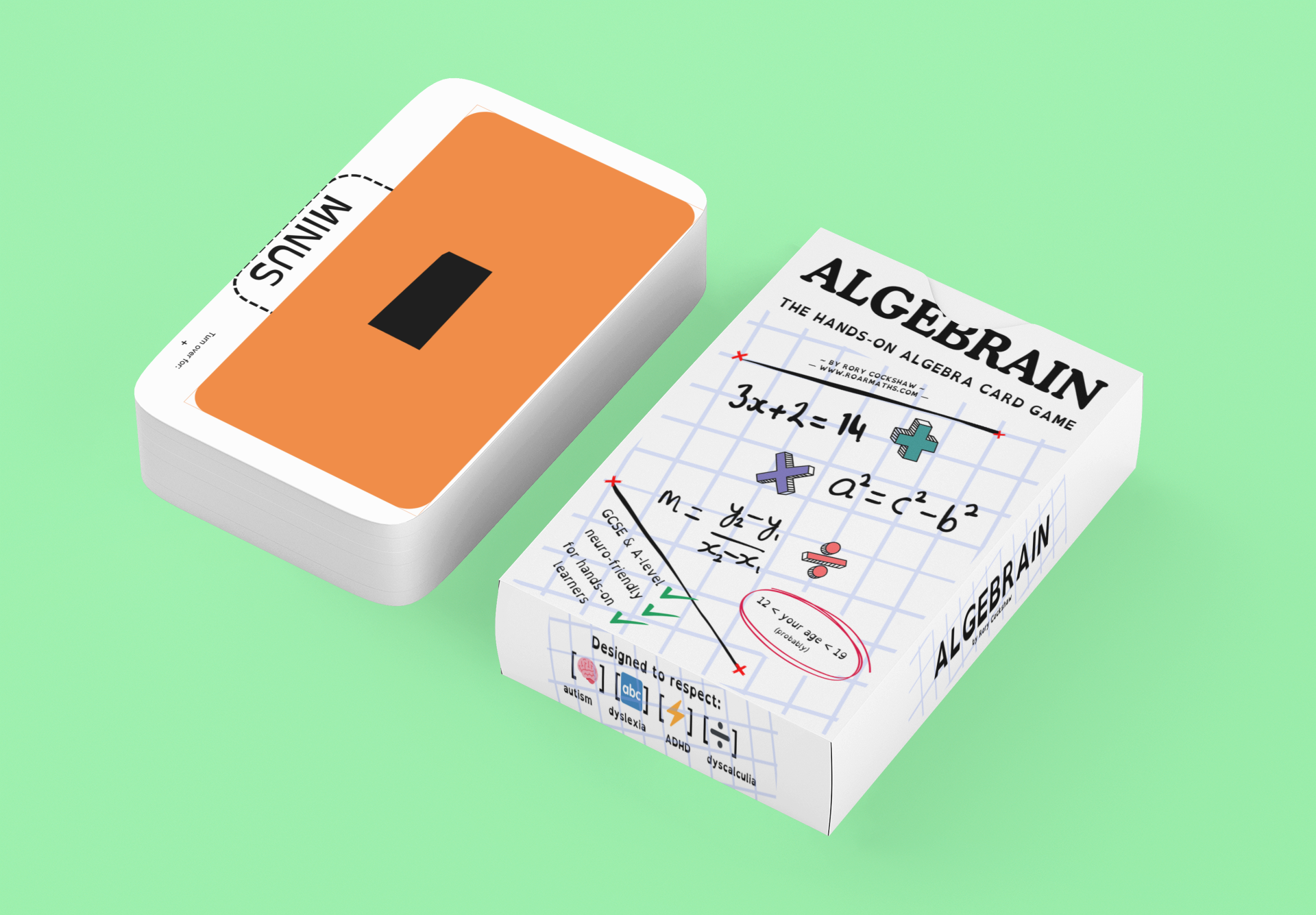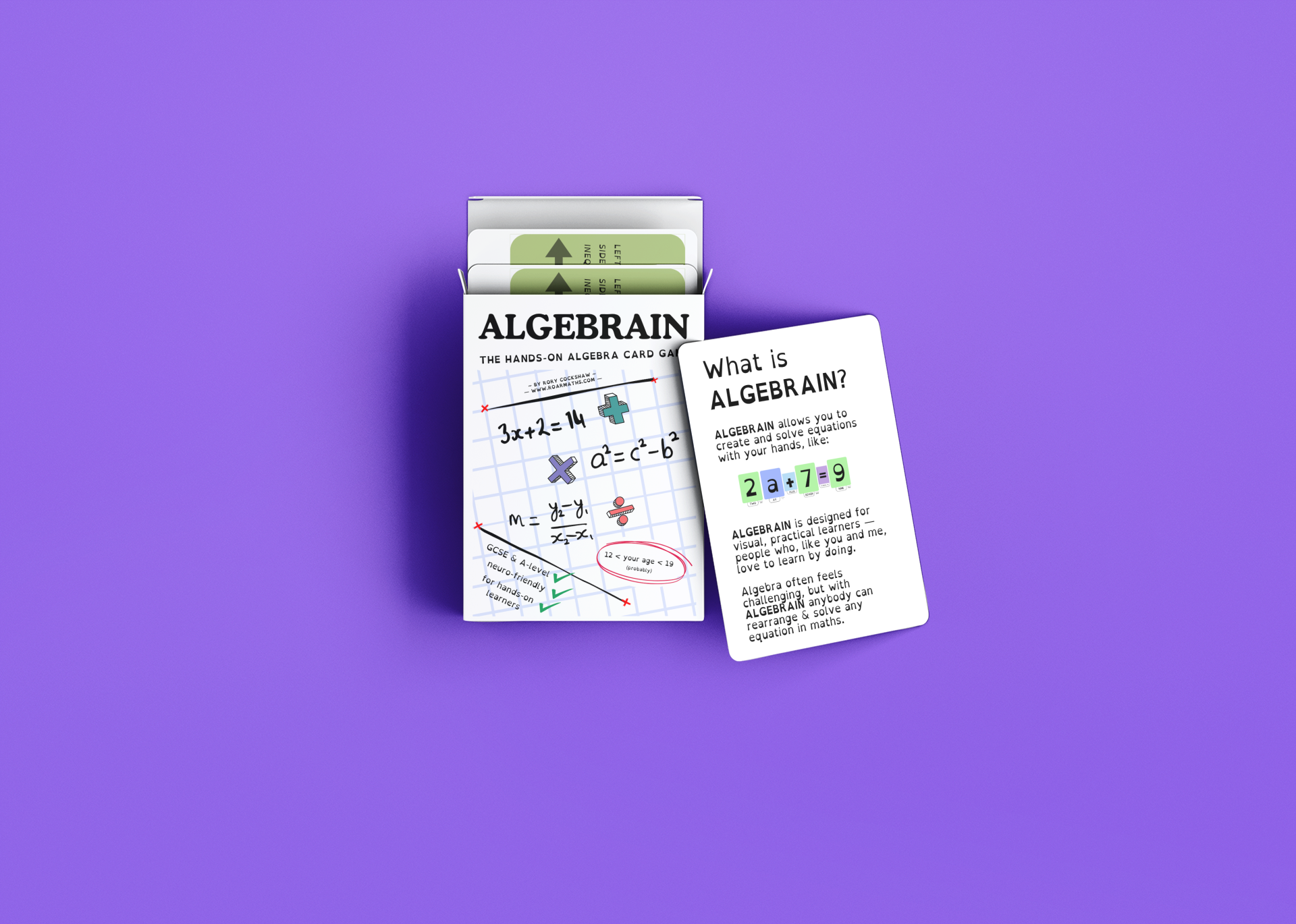 Algebrain is a brand-new card game aimed at teaching algebra to 9-18 year olds in a hands-on way.